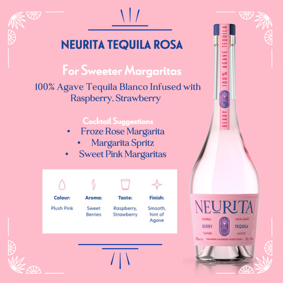 100% Agave Tequila sourced from Jalisco, Mexico, infused with Raspberry & Strawberry fruit extracts. Neurita flavoured Tequila is the perfect base for sweeter margarita cocktails as well as other Tequila cocktails.